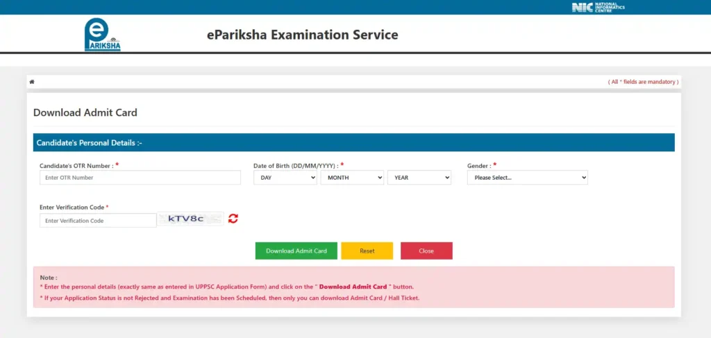Step 3: अब आपके सामने एडमिट कार्ड डाउनलोड करने के लिए एक फॉर्म खुलेगा।